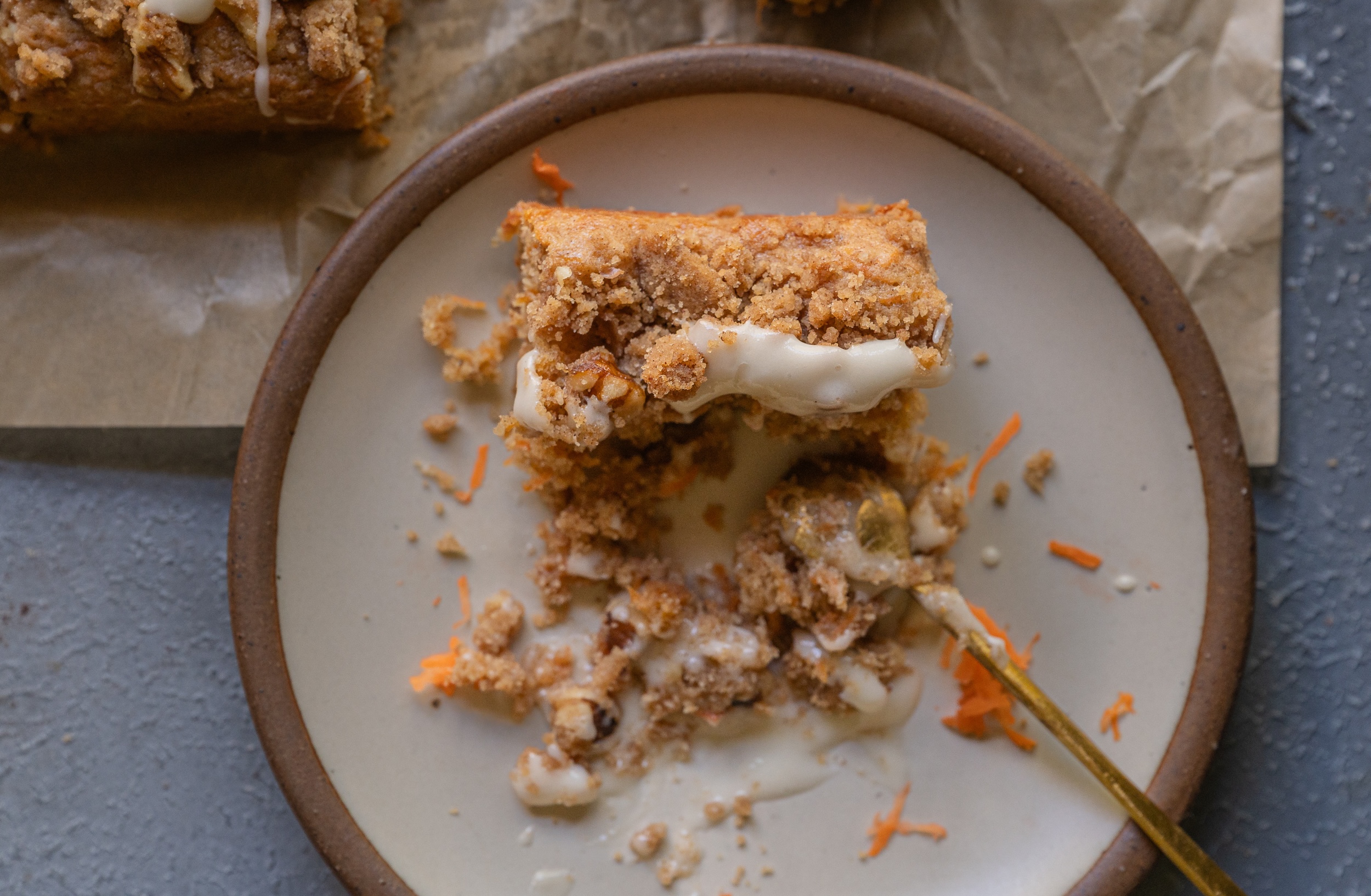 This recipe keeps carrot cake simple by letting carrots be the only mix-in in the batter. Instead of folding nuts into the cake, walnuts are placed on top, creating texture contrast without weighing down the crumb. Brown butter adds deep nutty flavor, while sour cream ensures a tender and moist texture. A cinnamon streusel layer adds structure and warmth, making this cake feel indulgent yet still appropriate for breakfast. If you're looking for a more elevated celebration version, try my two-layer carrot cake with brown butter mascarpone frosting, a bakery-style take on classic carrot cake.