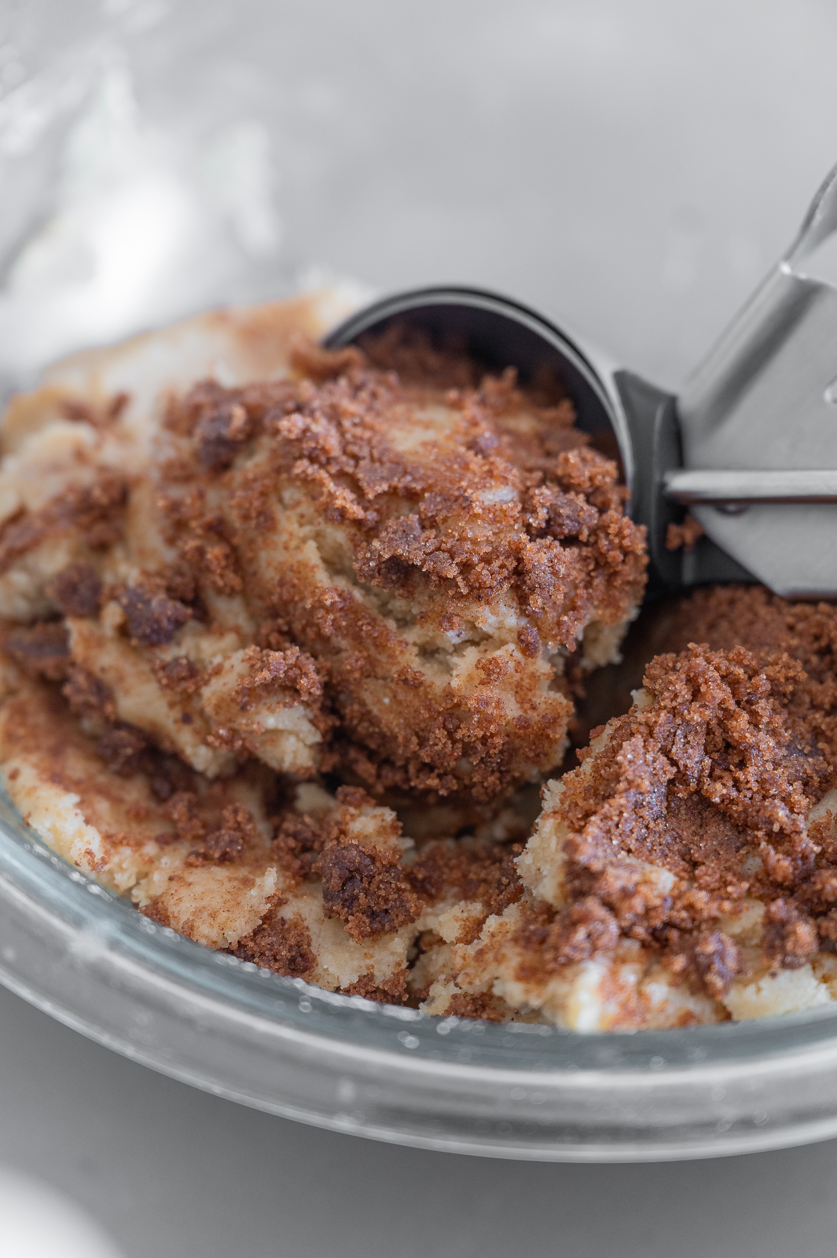 Stabilizes the cinnamon layer so it stays swirled instead of melting away.